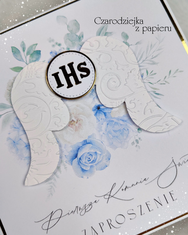 Tłoczone, przestrzenne skrzydła z symbolem IHS nadają projektowi lekkości.