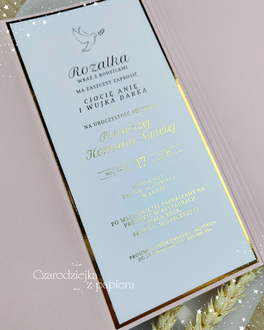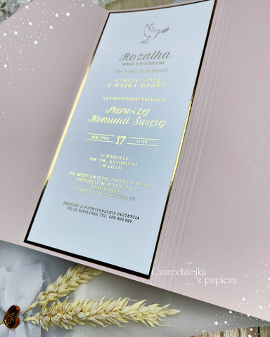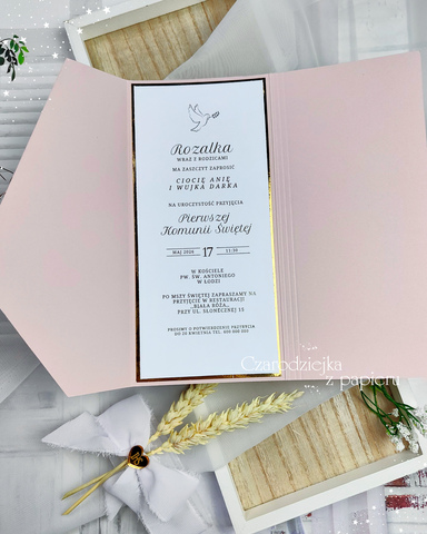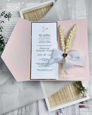 To propozycja dla osób, które szukają papeterii komunijnej w stylu eleganckim, subtelnym i dopracowanym w najmniejszym detalu.