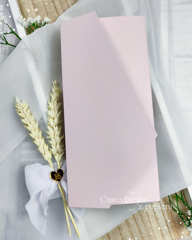 Eleganckie, składane zaproszenie w formie kopertowego folderu w subtelnym, pudrowym różu.